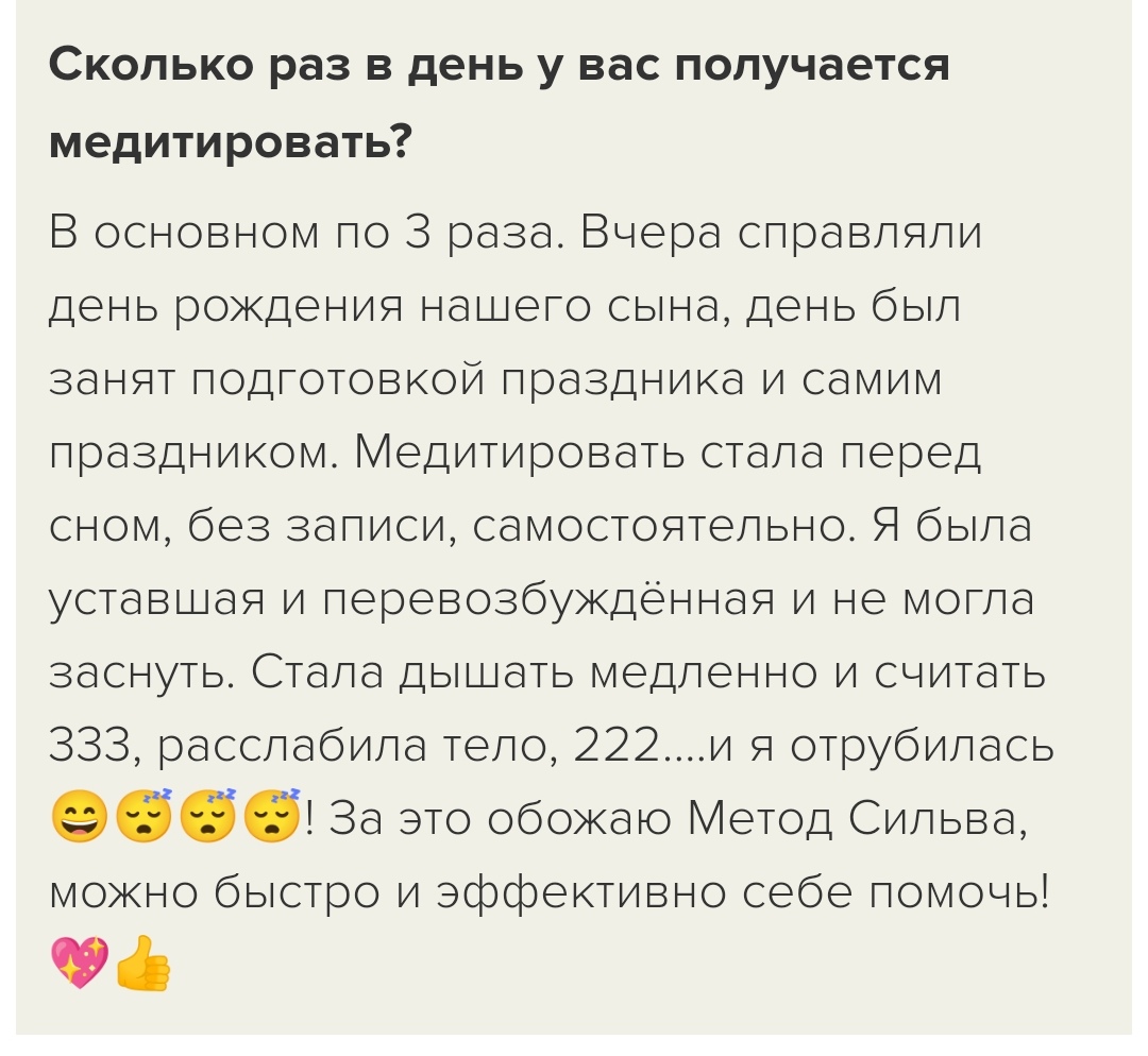 «Основываясь на результатах недавних исследований генетики, проведенных в Гарварде, о воздействии расслабления, осознанного дыхания и творческого воображения, я могу с уверенностью утверждать, что техники метода Сильва стимулируют выработку генов в мозге человека, которые способствуют уменьшению физического и психологического стресса и повышают иммунитет».